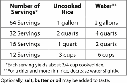 Place rice, boiling water and, optionally, salt and butter or oil in a steam table pan. Cover tightly and steam according to manufacturer’s directions.